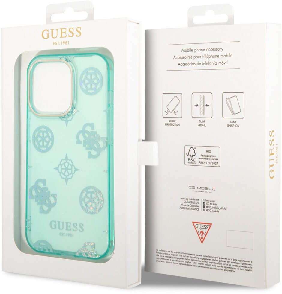 Чехол CG Mobile Guess PC/TPU Peony glitter Electroplated camera Hard для iPhone 14 Pro, цвет Бирюзовый (GUHCP14LHTPPTT) интересное: