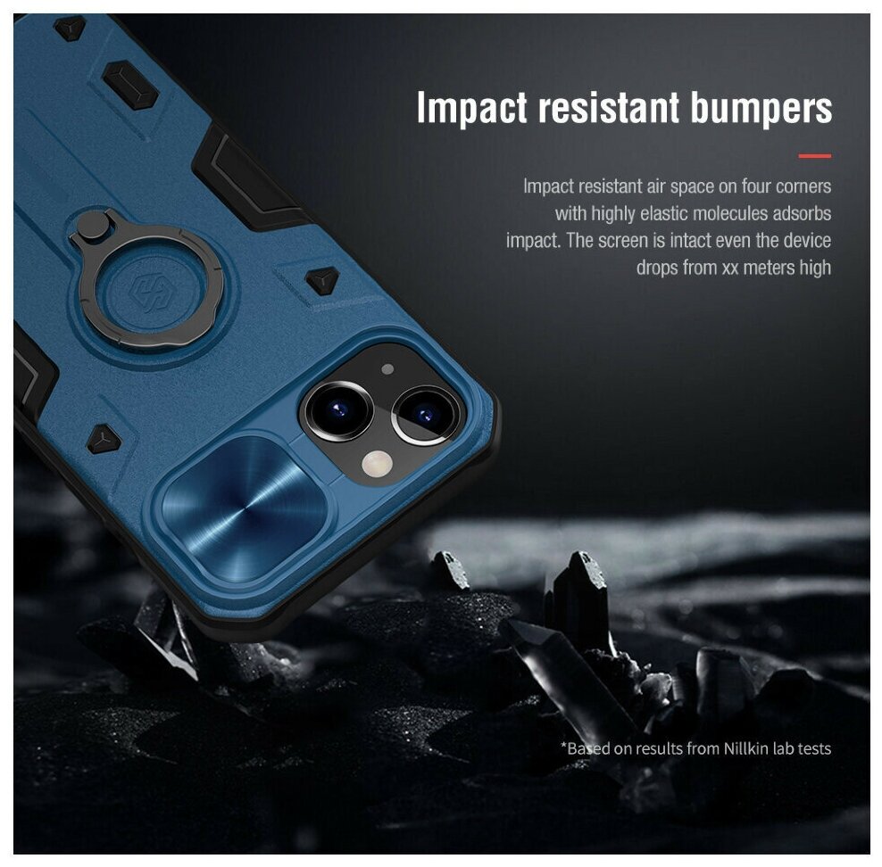 Противоударный чехол с кольцом и защитой камеры Nillkin CamShield Armor Case для iPhone 13 синий интересное: