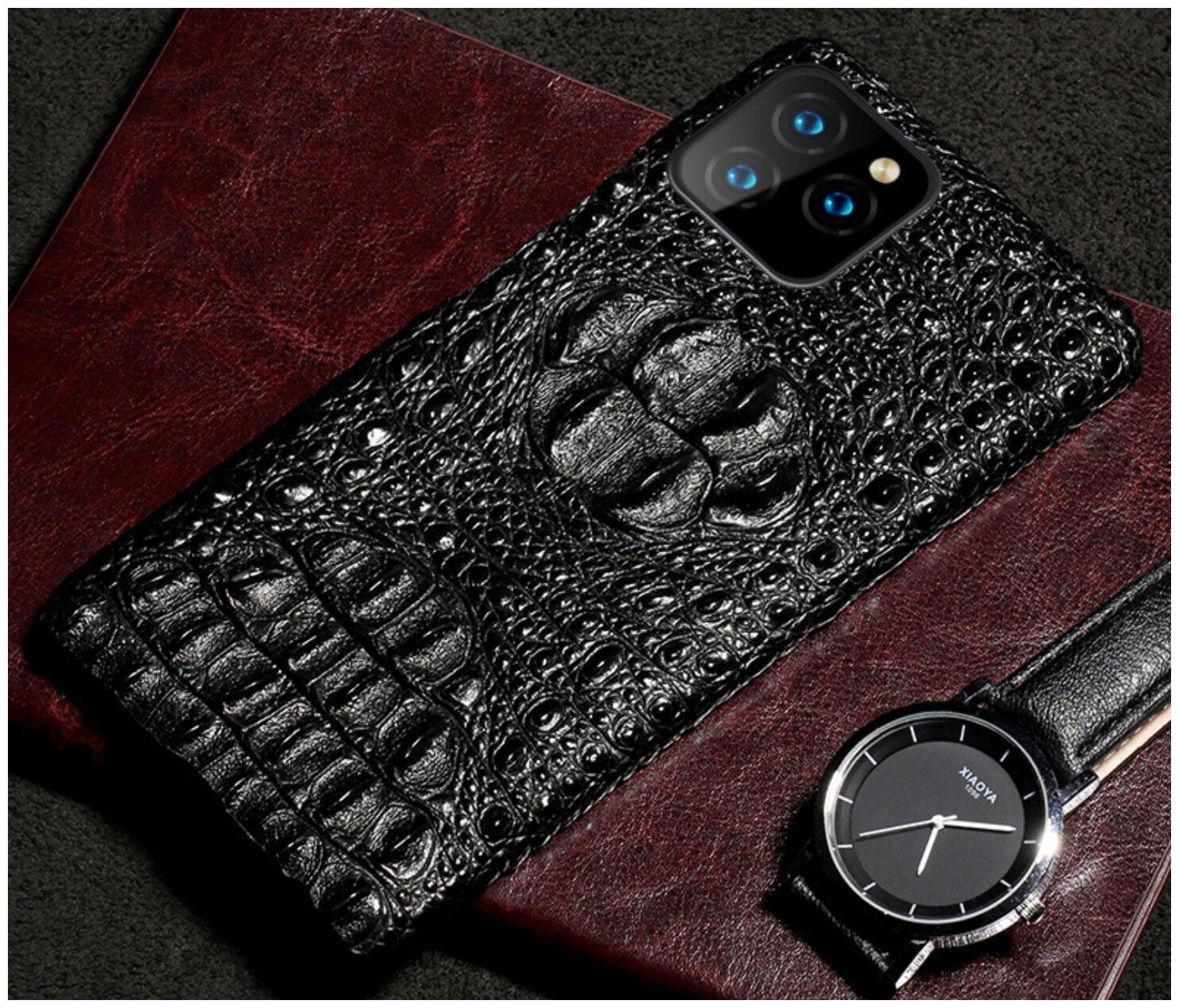 Чехол-накладка-бампер Чехол.ру Premium для iPhone 11 Pro Max (Айфон 11 Про Макс) из натуральной кожи крокодила с тиснением экзотическая неповторима... интересное: