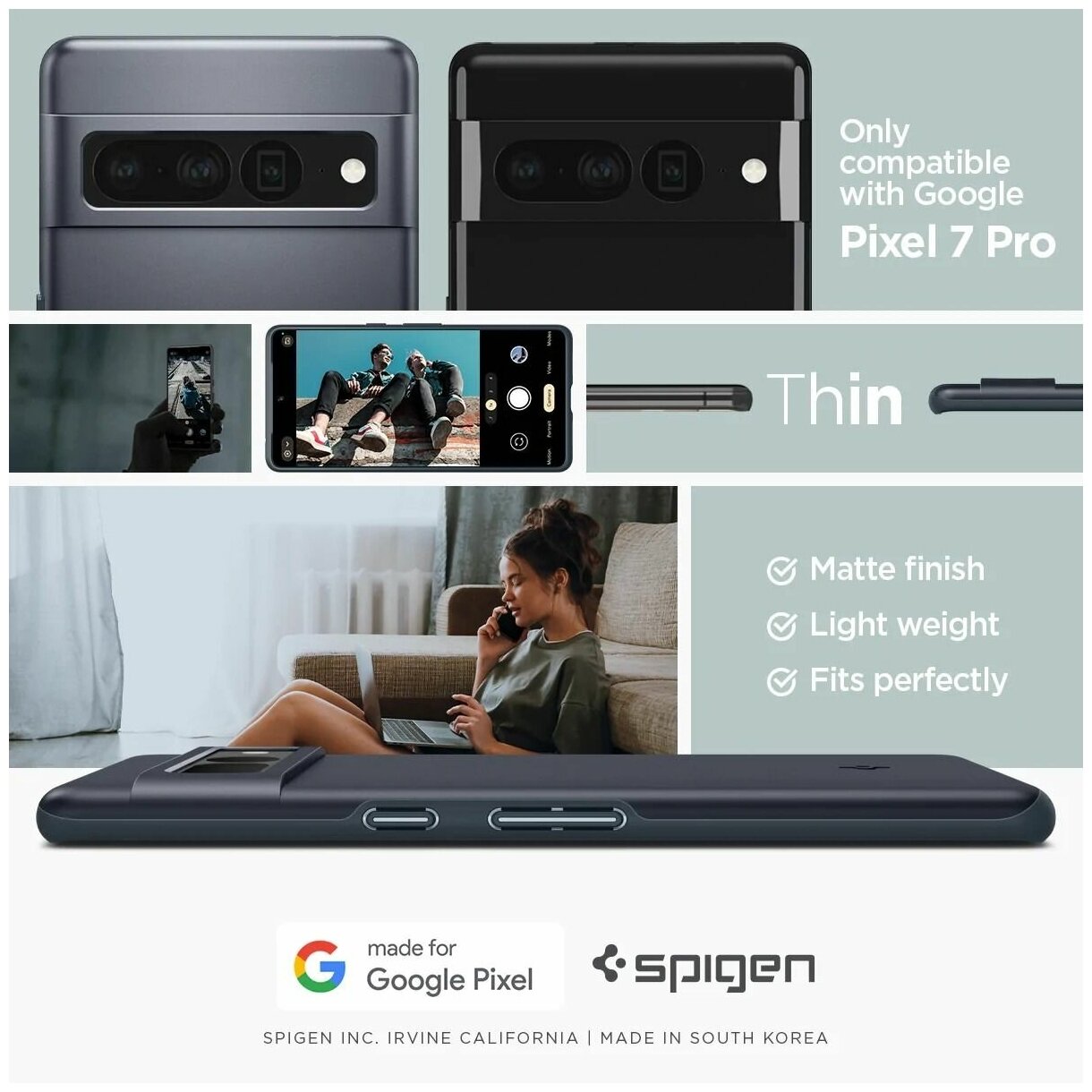 Чехол Spigen Thin Fit (ACS04734) для Google Pixel 7 Pro (Metal Slate) интересное: