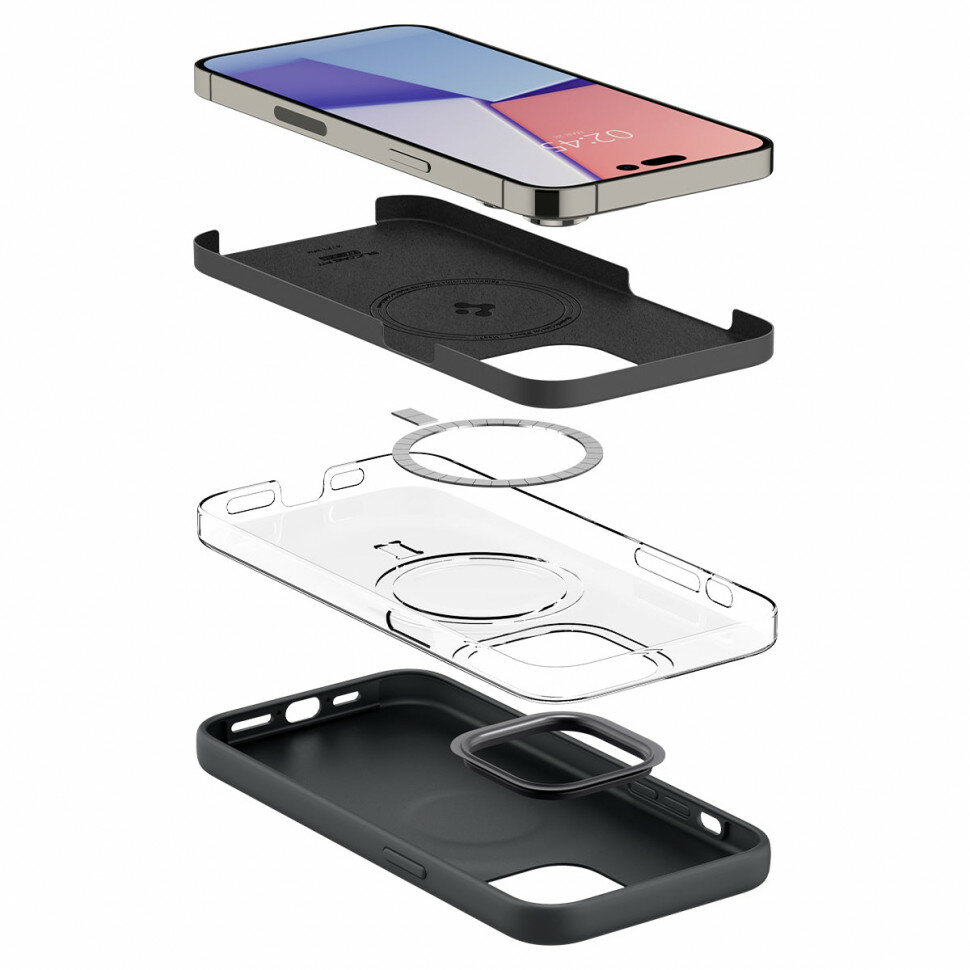 Чехол SPIGEN Silicone Fit с MagSafe для iPhone 14 черный (Black) интересное: