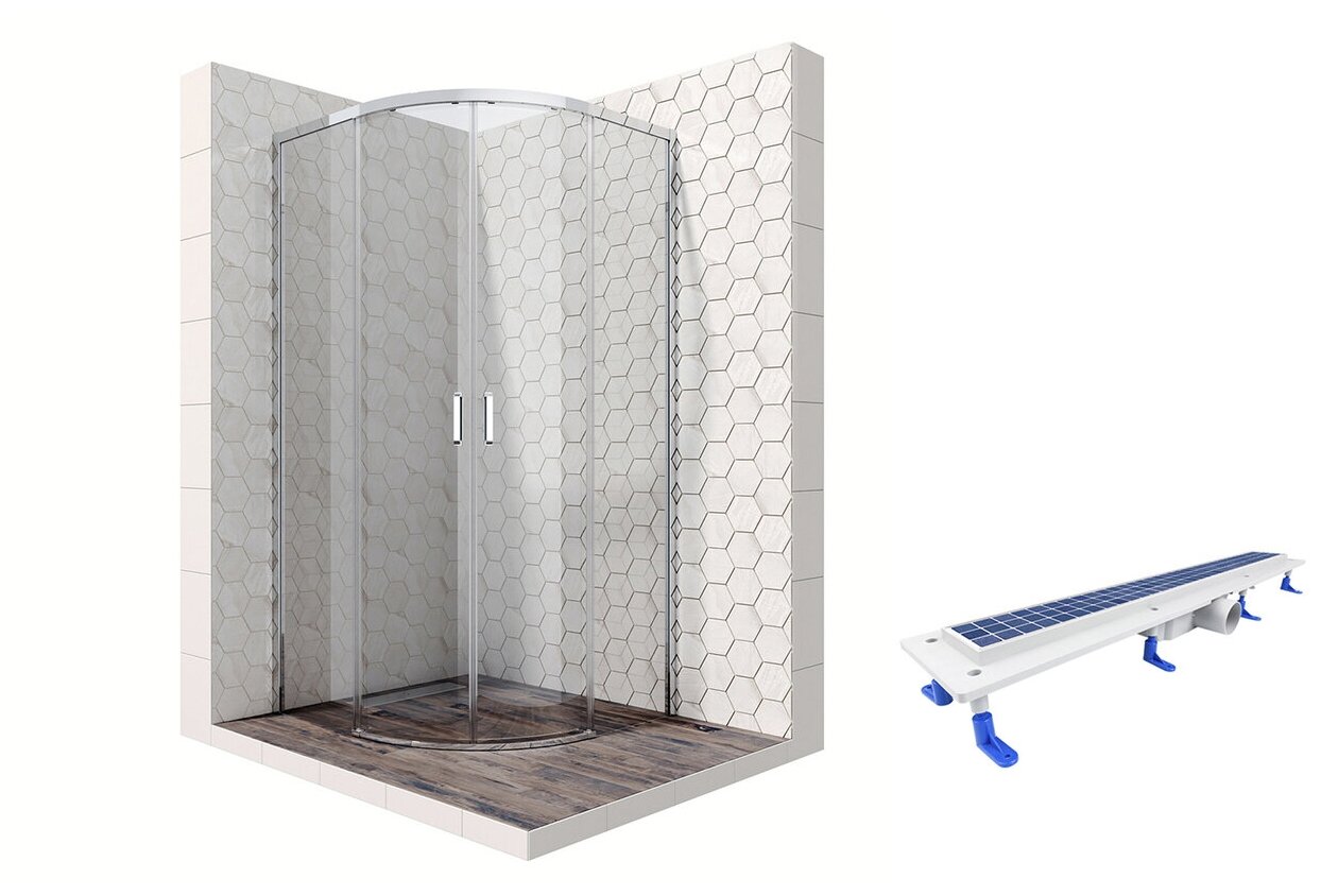 Комплект полукруглого душевого ограждения с линейным трапом Ambassador Queen 11011101-ST1, с EasyClean, 90 х 90 см интересное: