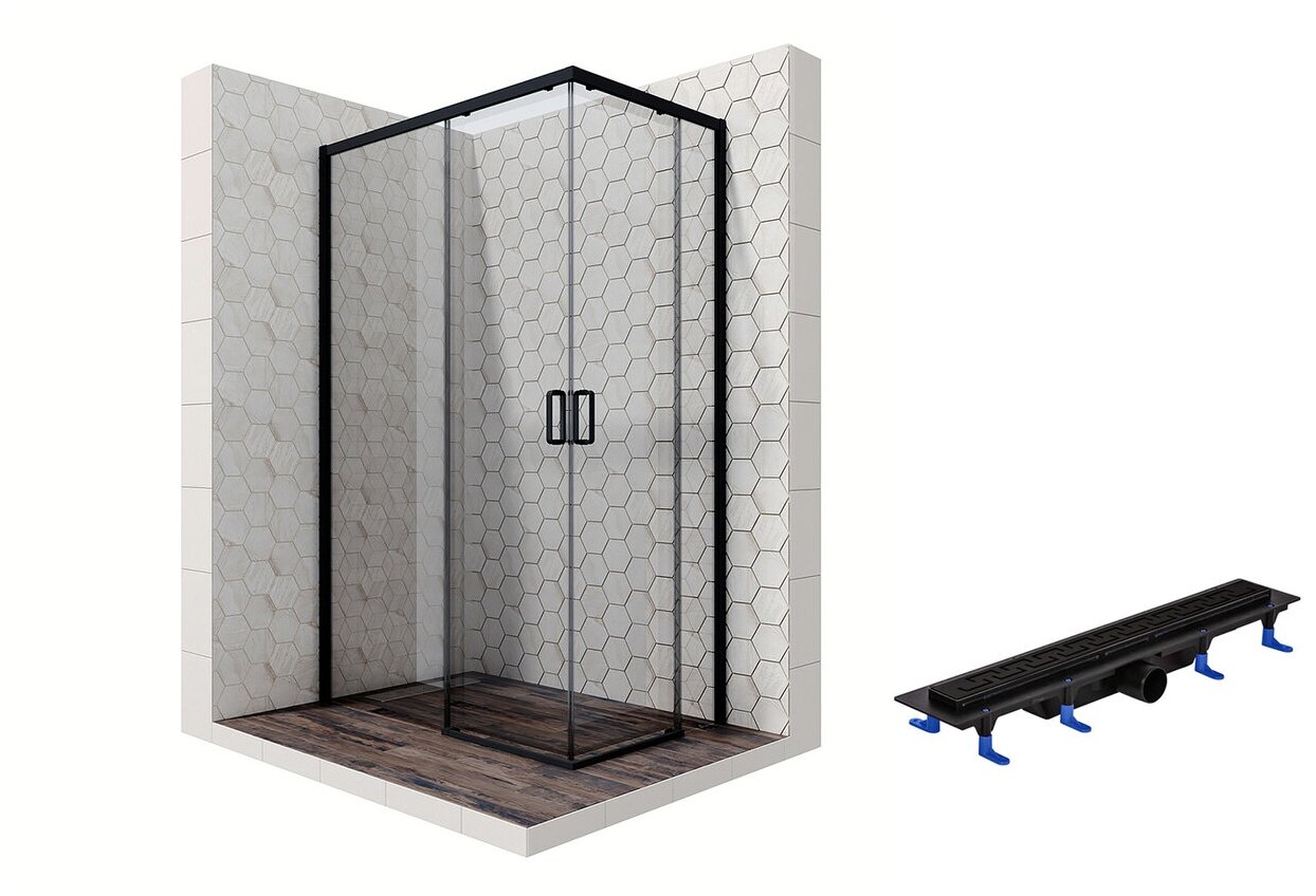 Комплект прямоугольного душевого ограждения с линейным трапом Ambassador Queen Black 11011205L-ST5, с EasyClean, 120 х 80 см интересное: