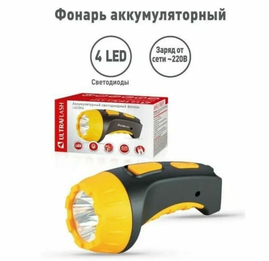 Фонарь LED 3804 (аккум 220В черн./желт. 4 LED; SLA пласт. короб), ULTRAFLASH 9215 (1 шт.)