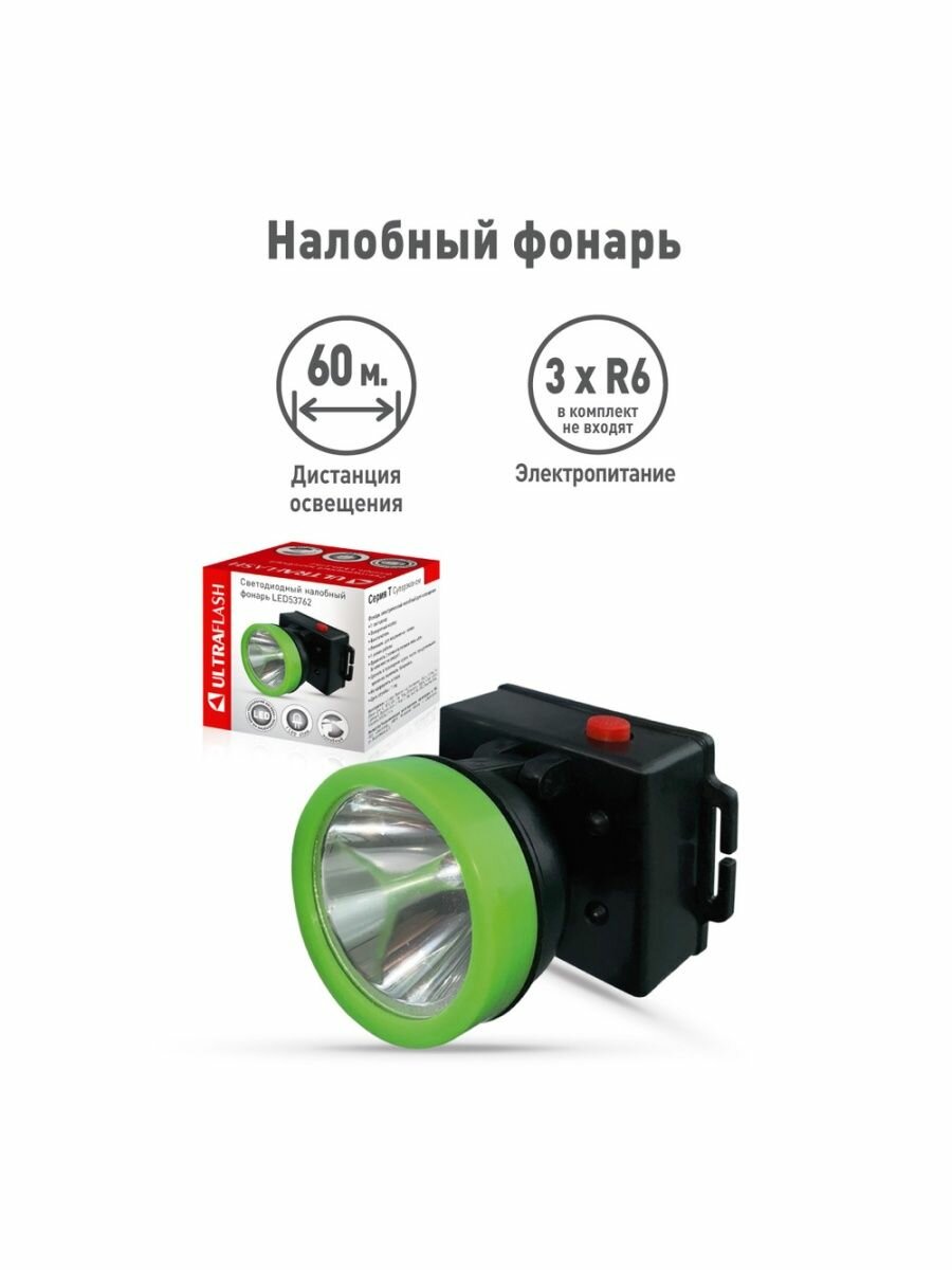 Налобный фонарь Ultraflash LED53762 черный, 1LED 0,5Вт, 1 режим, 3XR6, пластик, коробка 14254