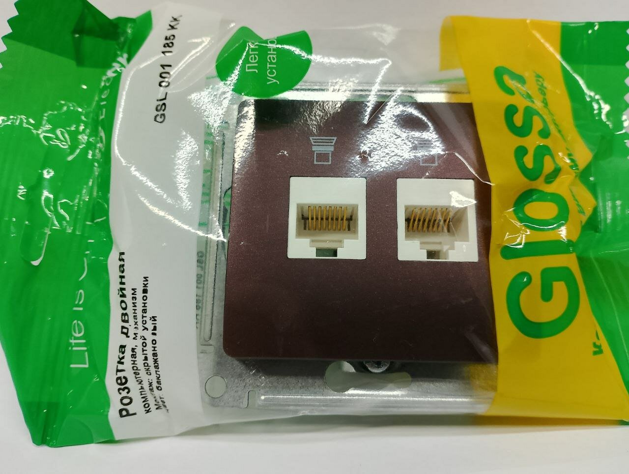 GLOSSA розетка двойная компьютерная RJ45+RJ45, кат.5E, механизм, баклажановый
