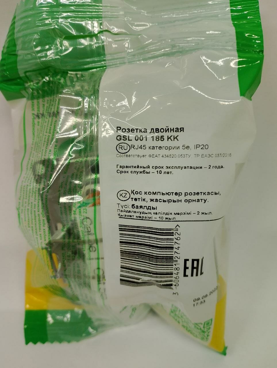 Розетка двойная компьютерная RJ45+RJ45 Schneider Electric Glossa, фисташковый GSL001085KK