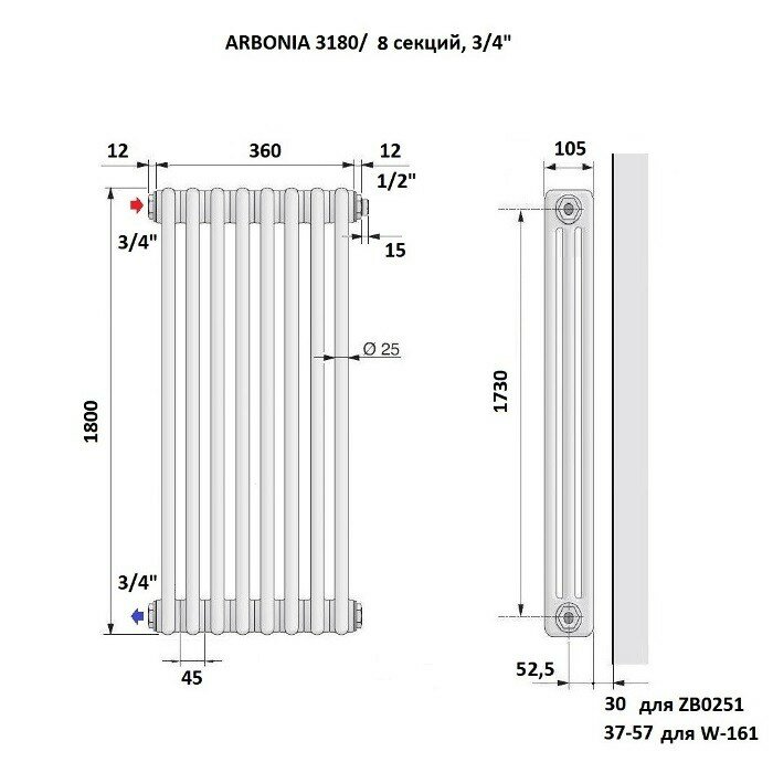Стальной трубчатый радиатор Arbonia 3180, 08 секций, 3/4", с боковой подводкой, цвет белый Ral 9016 интересное: