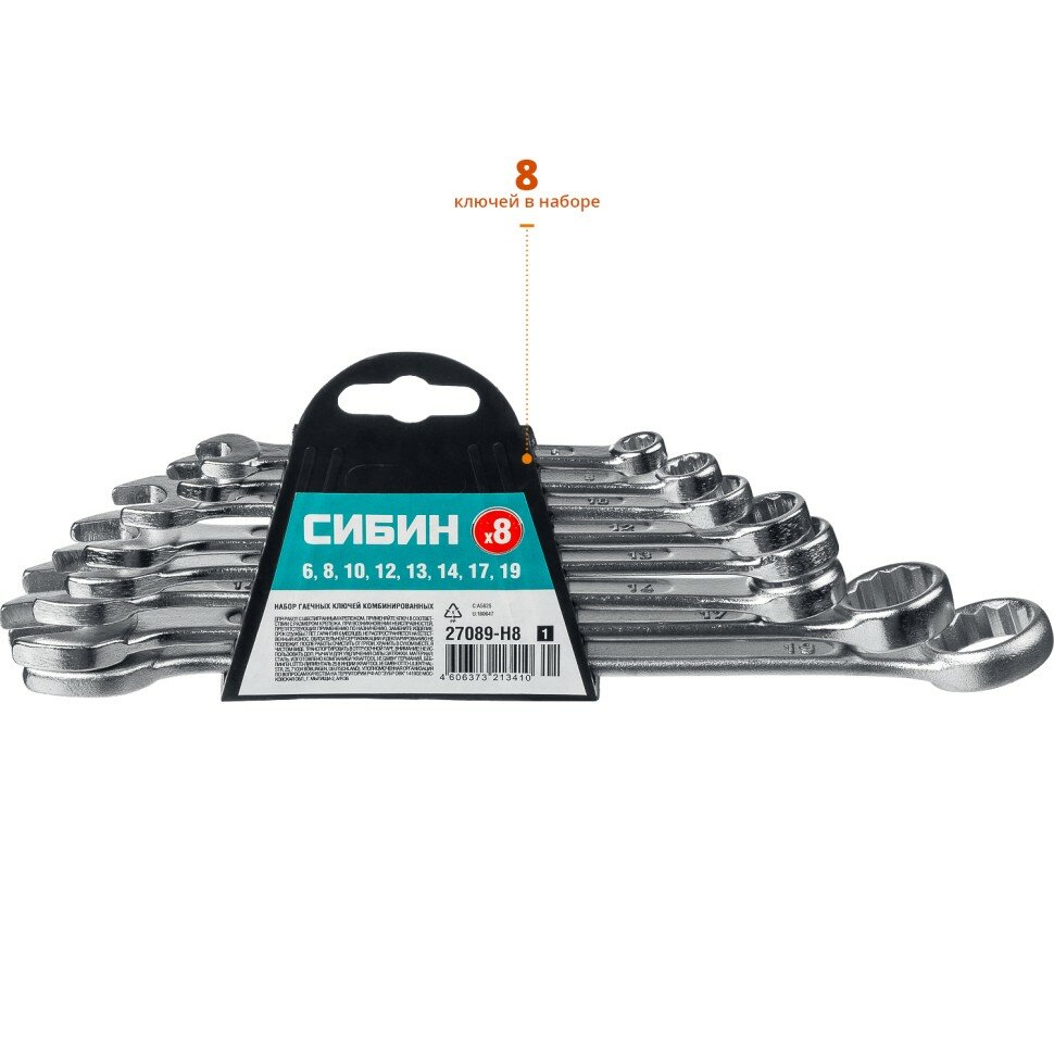 Набор комбинированных гаечных ключей 8 шт, 6 - 19 мм, СИБИН,27089-H8_z01