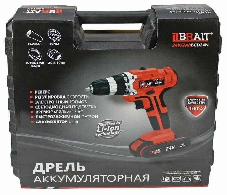 Ниже Вы можете прочитать отзывы на Дрель-шуруповерт аккумуляторная BRAIT BCD24N (24В Li-ion,2акк,1.5Ач,30Нм,подстветка,реверс,кейс), ознакомится с подробными характеристиками, посмотреть интересные обзоры и фотографии на Дрель-шуруповерт аккумуляторная BRAIT BCD24N (24В Li-ion,2акк,1.5Ач,30Нм,подстветка,реверс,кейс).