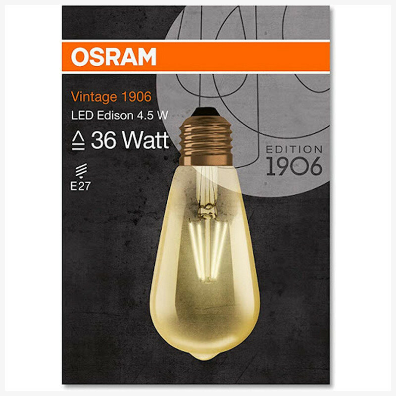 Светодиодная лампа Vintage 1906 LED CL EdisonFIL Gold 36non-dim4,5W/820 E27 140x64мм Osram .