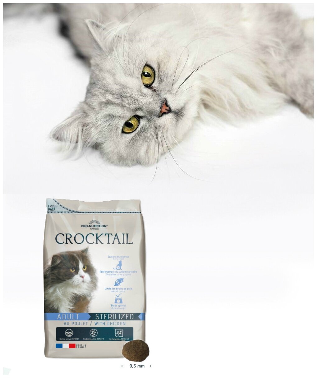 | Дозировка | Переход с другого корма на CROCKTAIL ADULT STERILIZED WITH CHICKEN следует осуществлять постепенно, последовательно увеличивая часть CROCKTAIL ADULT STERILIZED WITH CHICKEN. Корм можно давать как в сухом, так и в увлажнённом водой виде. Ежедневные количество корма должно быть скорректировано в зависимости от породы животного, веса и активности. У кошки всегда должен быть доступ к свежей питьевой воде. |