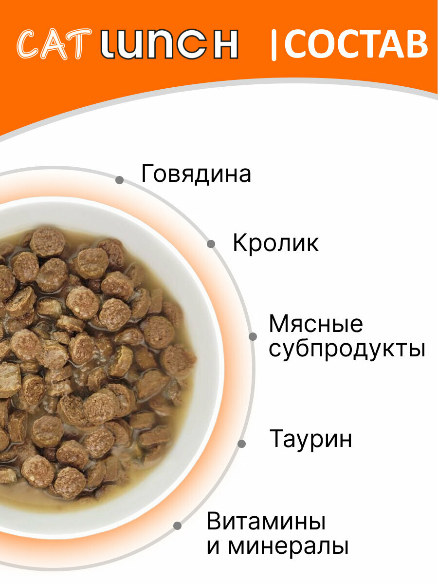 Купить Cat Lunch влажный корм для взрослых кошек кусочки в желе с говядиной и кроликом, в паучах - 85 г х 24 шт