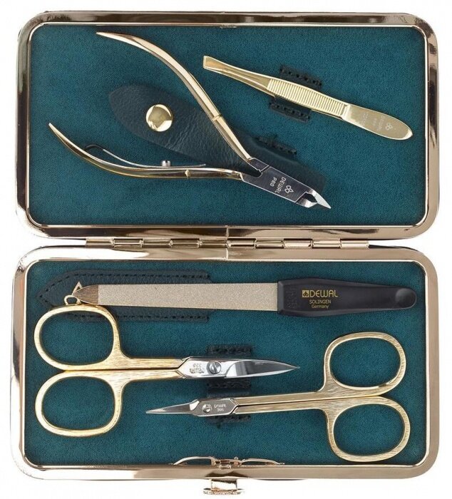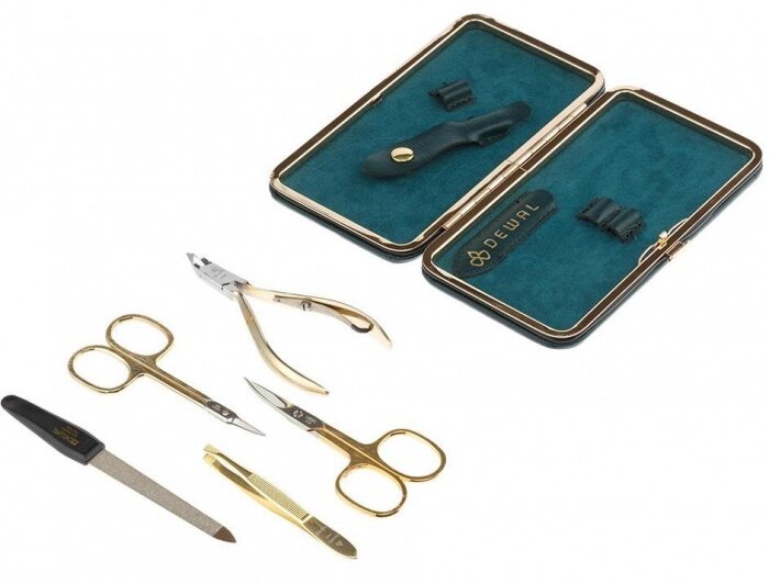 Dewal 903GREEN Маникюрный набор dewal, 5пр. футляр: натуральная кожа, цвет зеленый интересное: