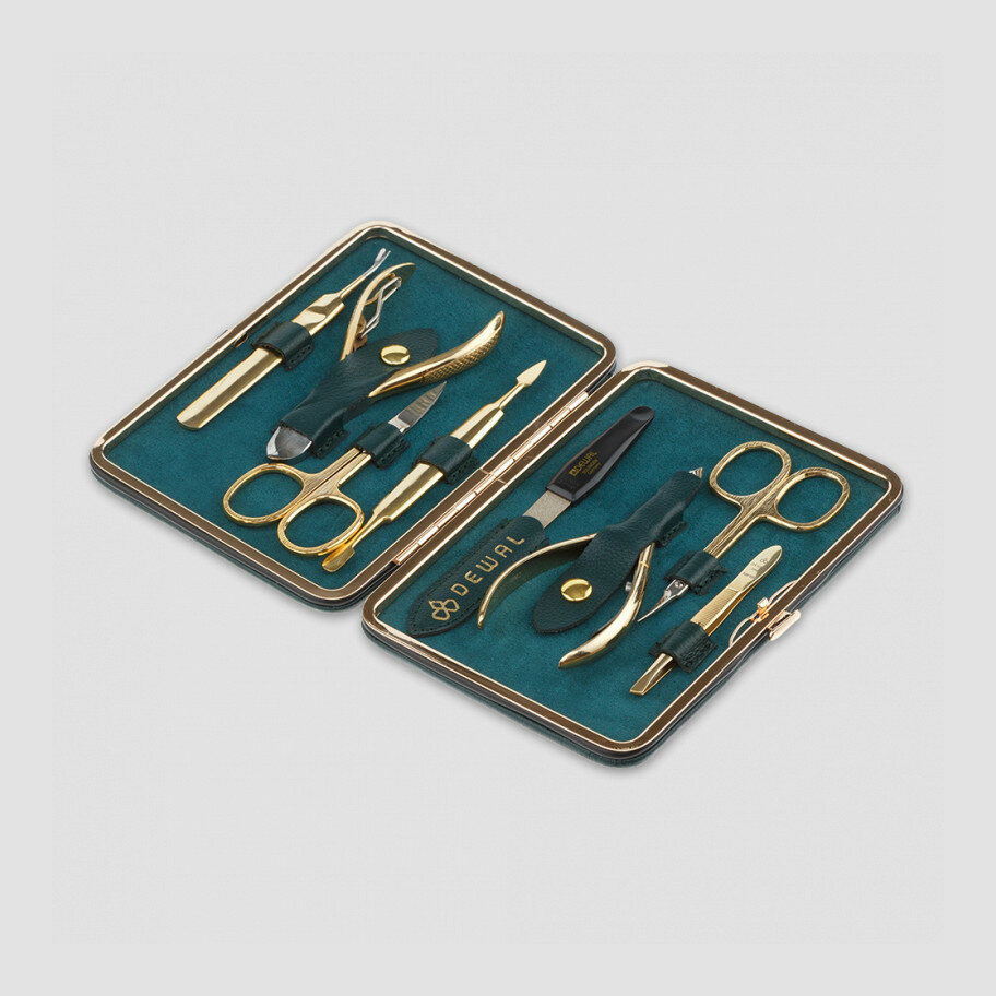Маникюрный набор DEWAL, 8пр. Футляр: натуральная кожа, цвет зеленый