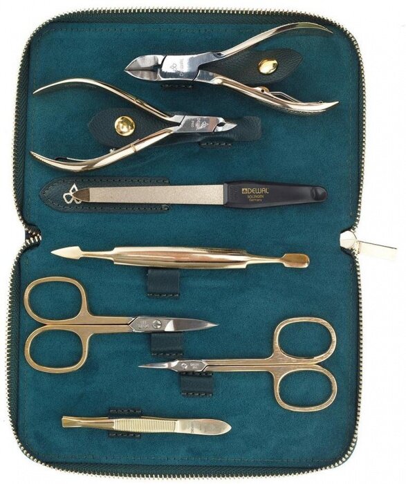 Dewal 904GREEN Маникюрный набор dewal, 7пр. футляр: натуральная кожа, цвет зеленый интересное: