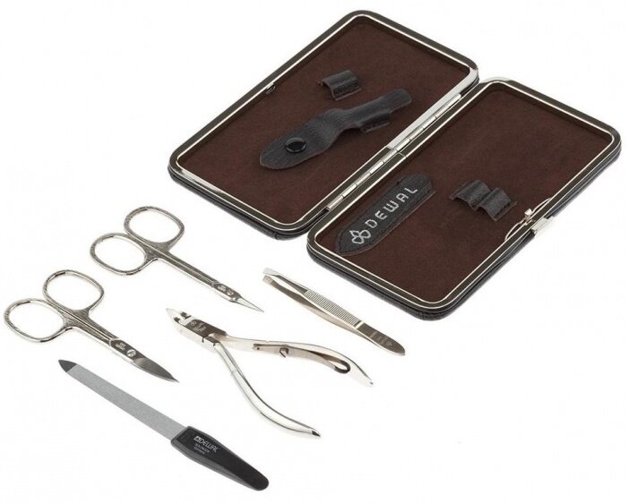 Маникюрный набор DEWAL, 5пр. Футляр: натуральная кожа, цвет черный