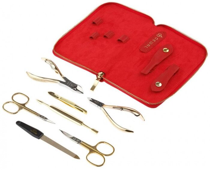 Маникюрный набор DEWAL, 7пр. Футляр: натуральная кожа, цвет красный, 904RED