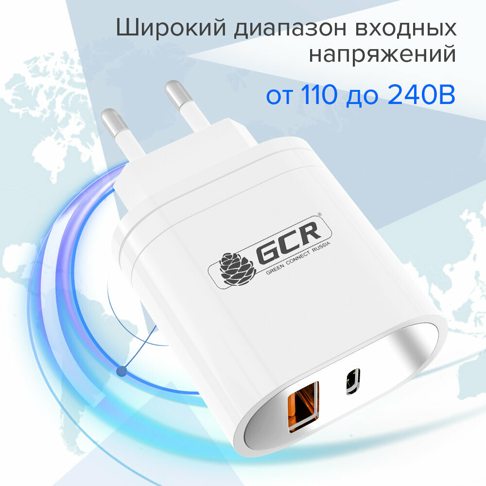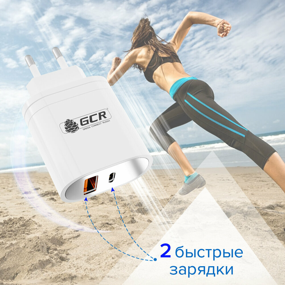 Комплект от GCR СЗУ на 2 USB порта TypeA и TypeC для быстрой зарядки + кабель TypeC для быстрой зарядки и передачи данных PD 18W QC 3.0 5A (GCR-WC36W), белый, 1.0м интересное: