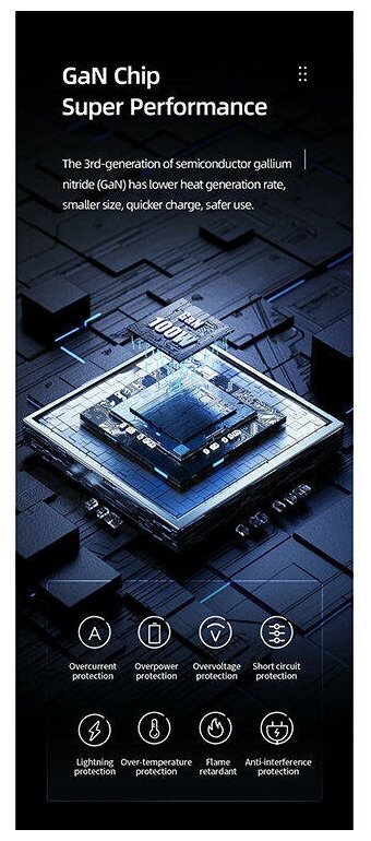 | Особенности | GaN / защита от перегрева / защита от перенапряжения / огнеупорный корпус / ударопрочный корпус |