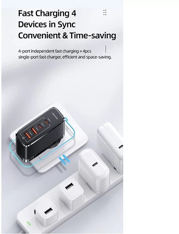Зарядное устройство USAMS T44 100W 4 Ports GaN Fast Charger (US-CC145)