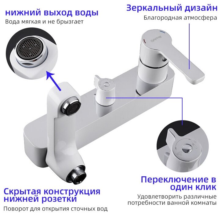 GAPPO набор смесителей для душа из нержавеющей стали белый +хром G2402-8 интересное:
