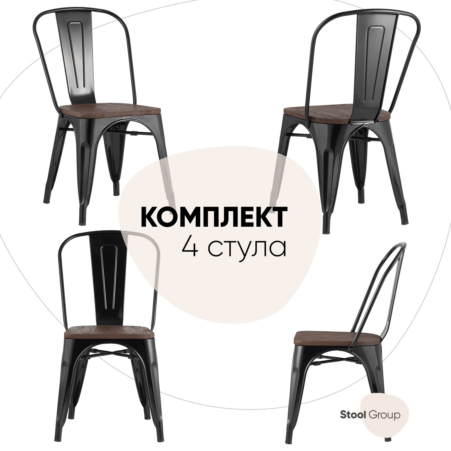 Купить Стул TOLIX черный глянцевый + темное дерево(комплект 4 шт)