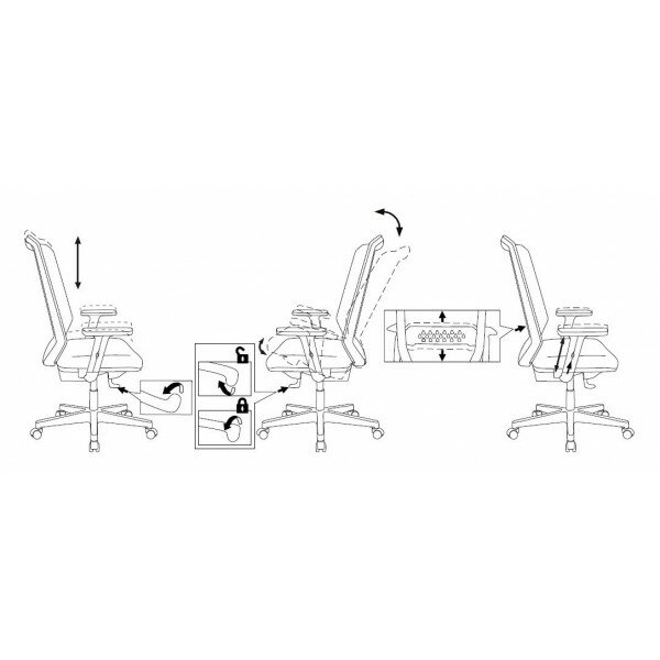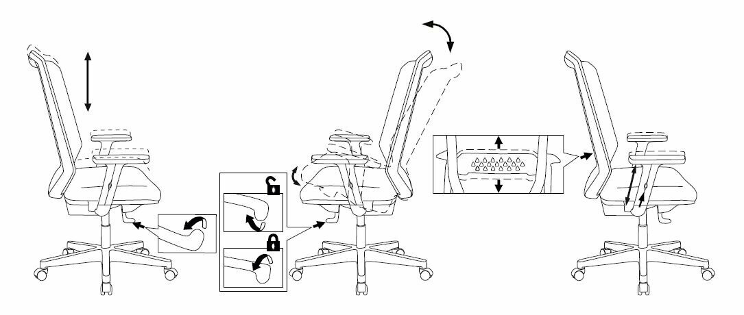 | Регулировка | высоты поясничного упора / высоты сиденья / наклона спинки |