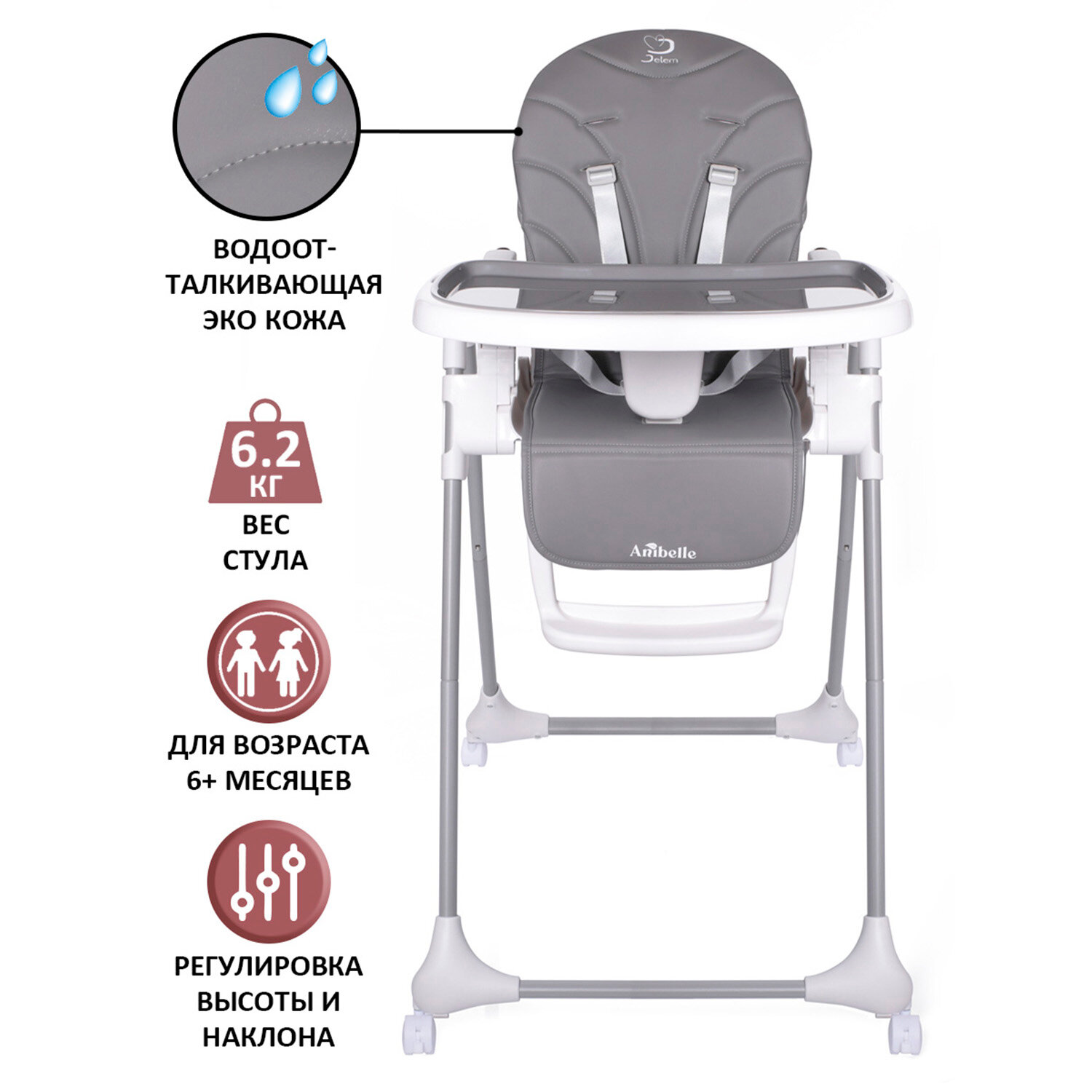 Стульчик детский Jetem Anibelle, с колесами и стопором, 6-36 месяцев, серый