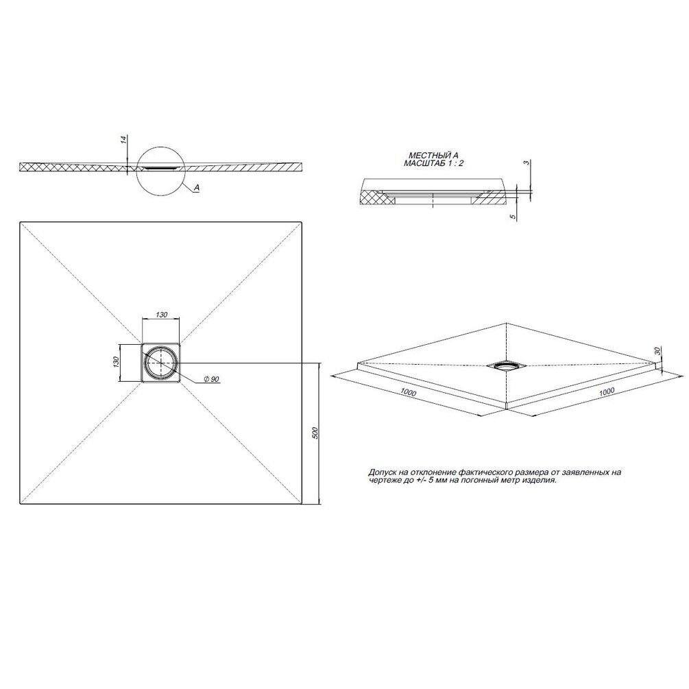River Поддон для душа WEMOR 70/14 S квадратный 700*700*140 мм, с сифоном
