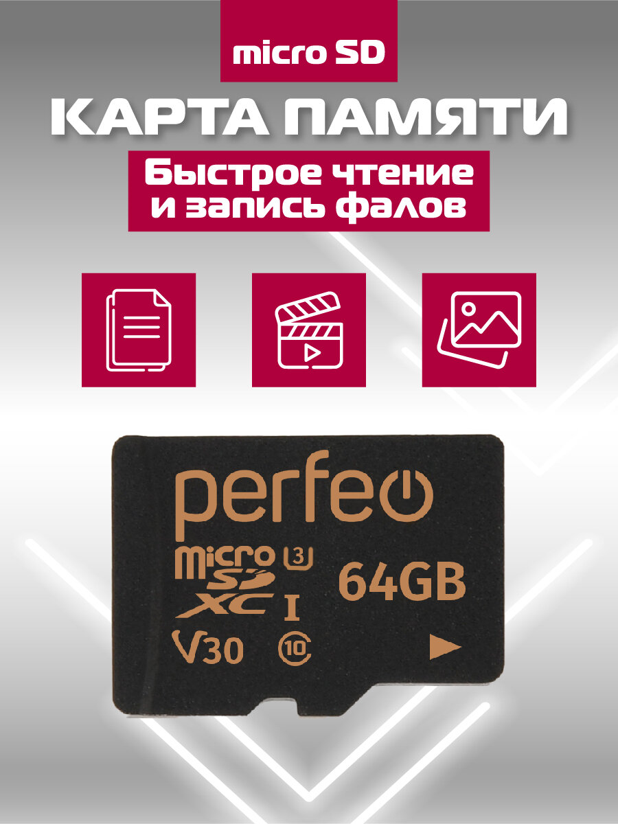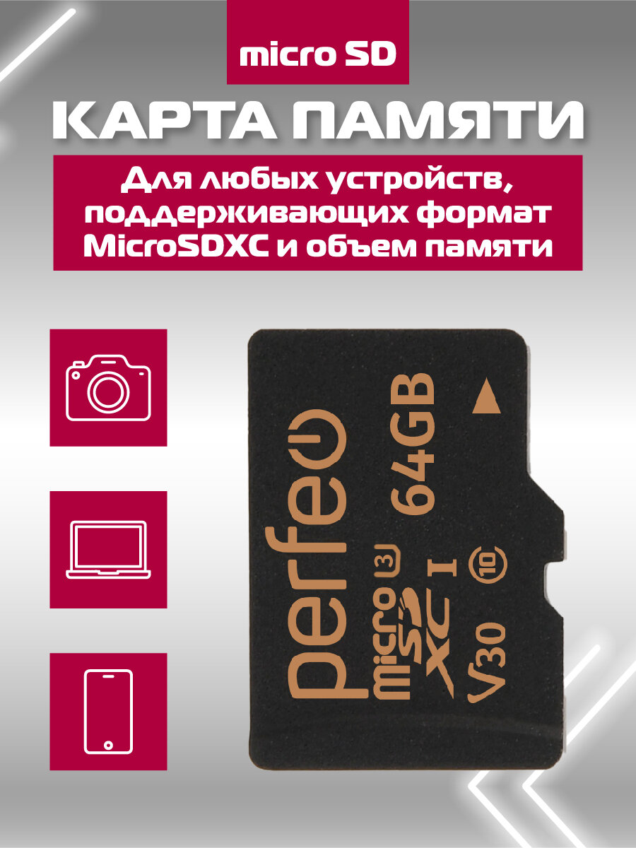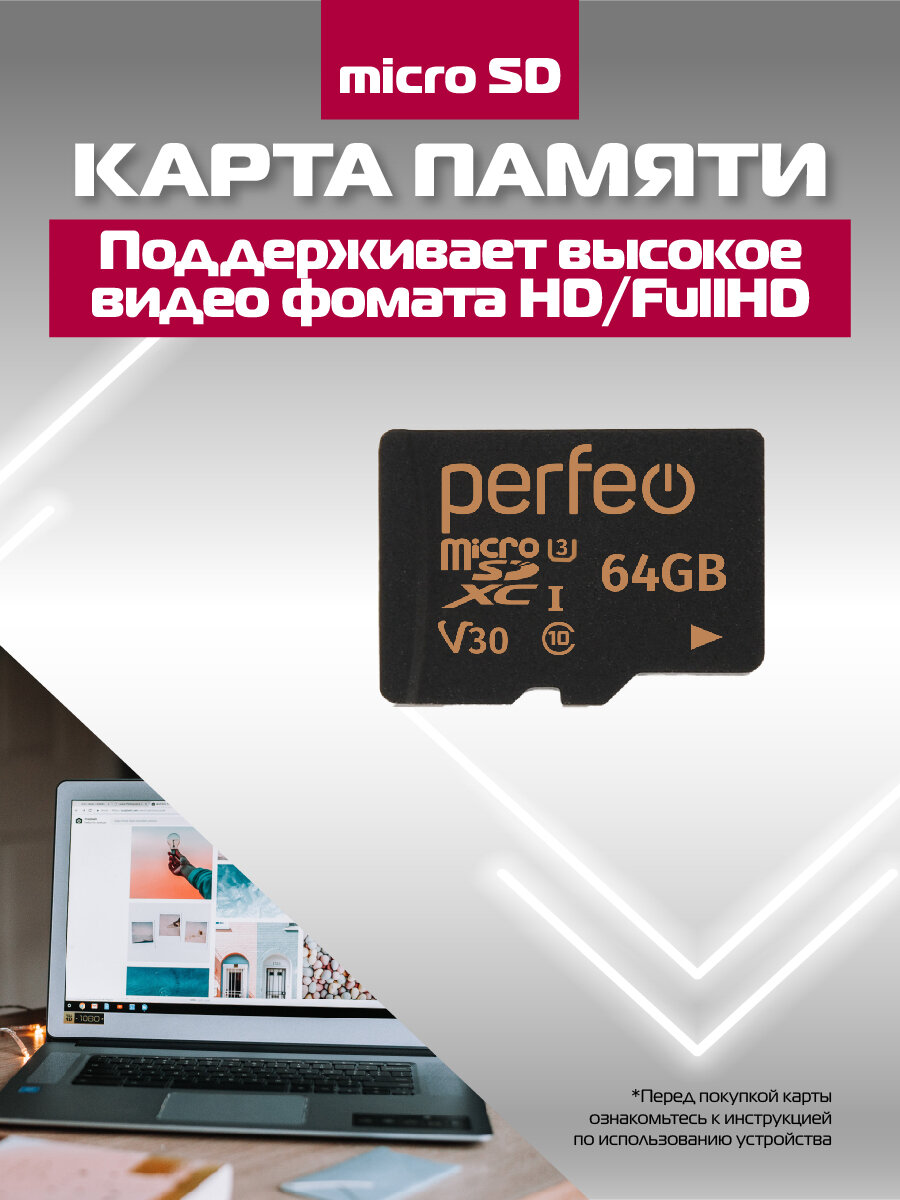 Карта памяти microSDXC 64GB Perfeo HC Cl10 UHS-1 V30 без адаптера интересное:
