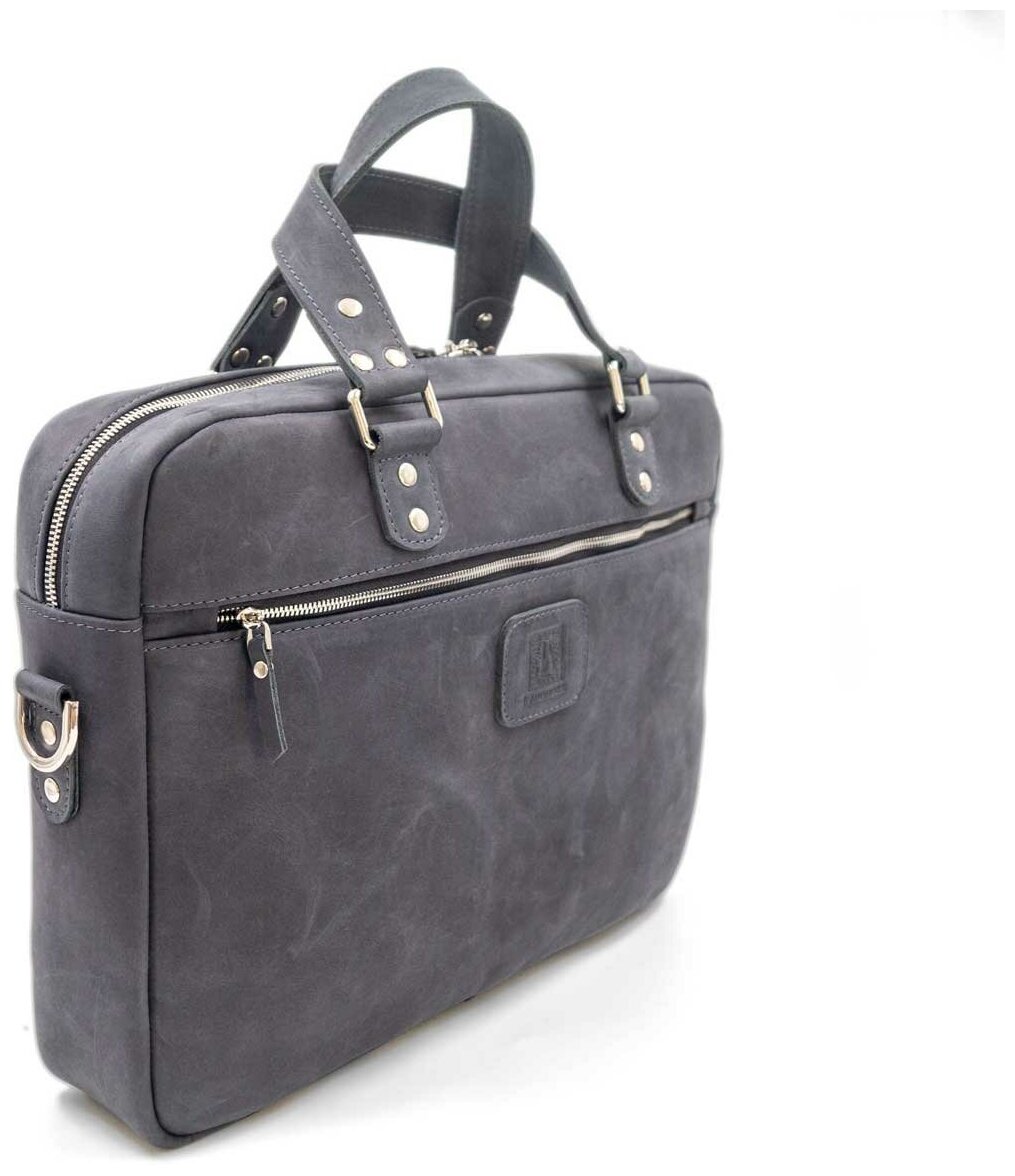 Купить Небольшая кожаная сумка для ультрабука / макбука / ноутбука J.Audmorr до 14 дюймов, Cardiff S Graphite, натуральная кожа, ручная работа