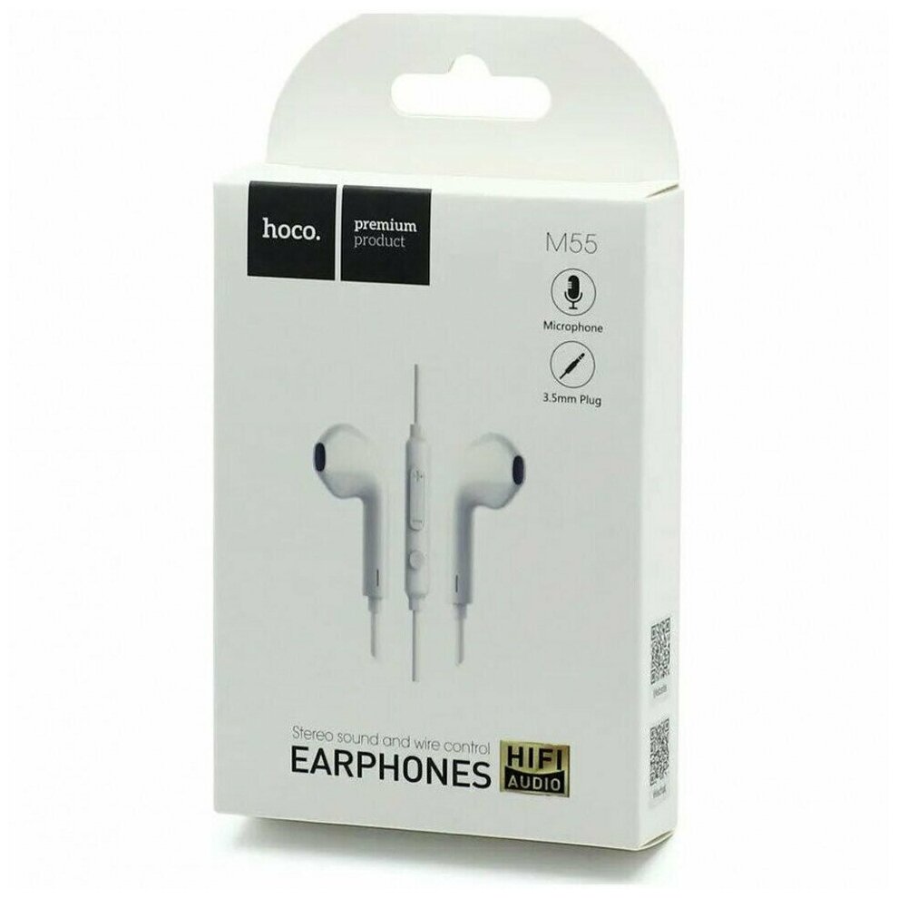 Hoco Наушники Hoco M55, проводные, вкладыши, микрофон, Jack 3.5, 1.2 м, белые