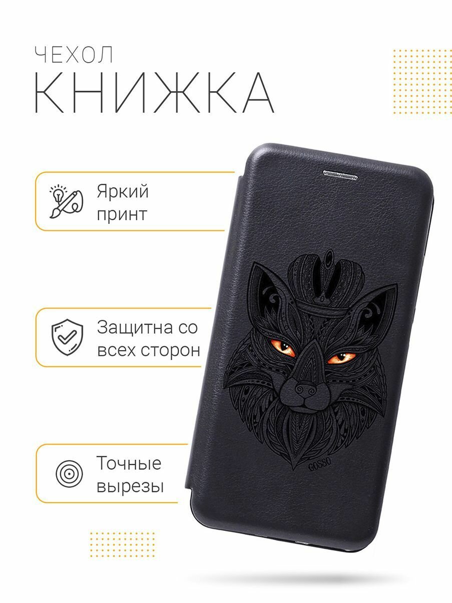 Чехол-книжка Book Art Jack для Samsung Galaxy A20 / A30 с принтом "Fox Queen" черный интересное: