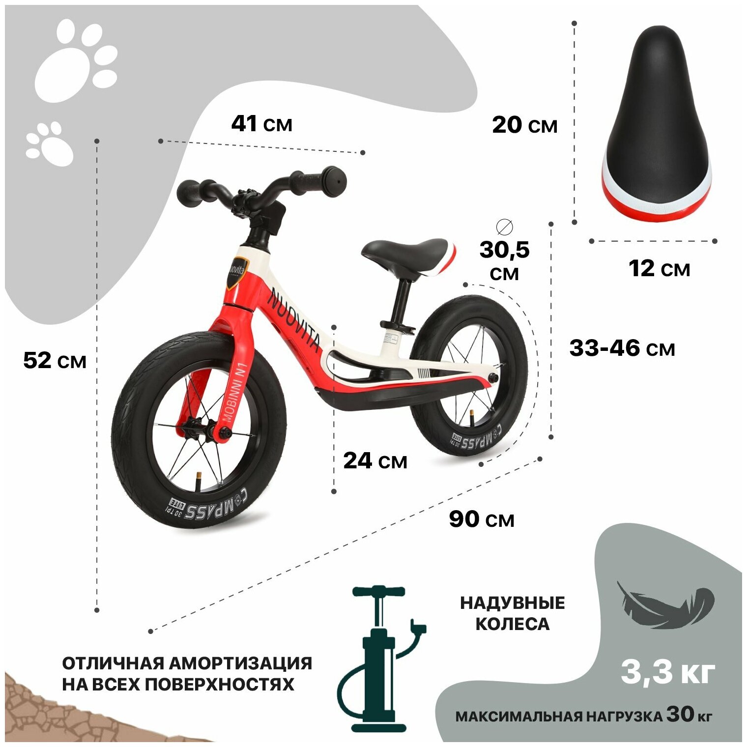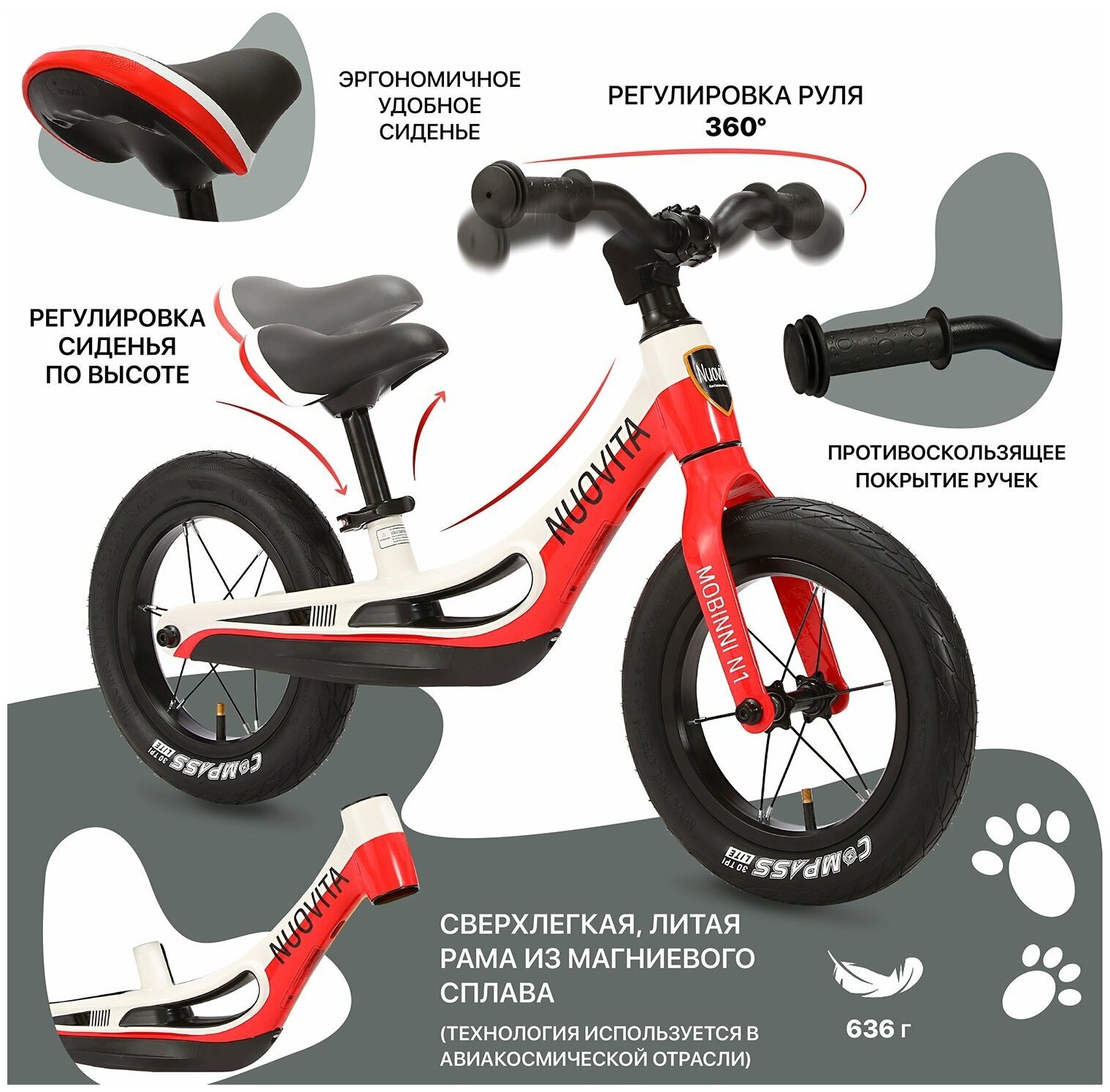 Беговел Nuovita Mobinni N1 Bianco Rosso/Красно-белый интересное: