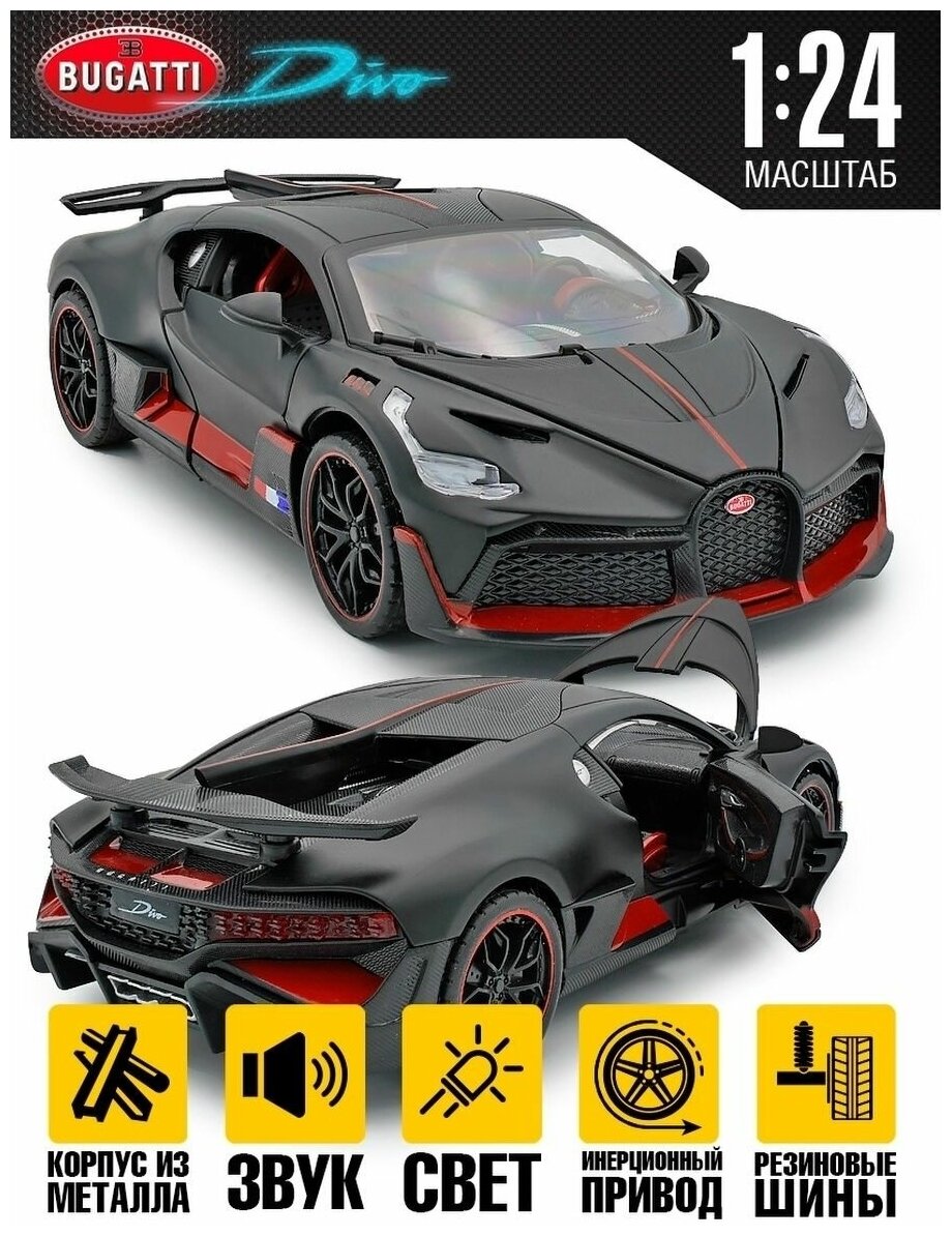 Машинка металлическая инерционная - модель Bugatti Divo (Бугатти Диво) 1:24 20см - Черный интересное: