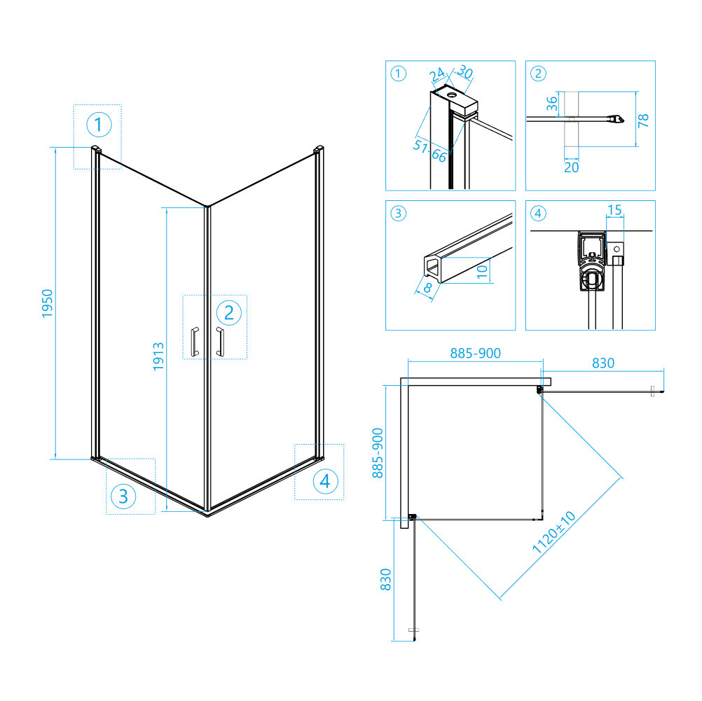 Душевой уголок Black&White Stellar Wind S101 800х800