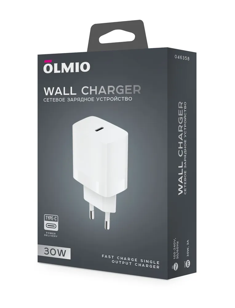 Сетевое зарядное устройство Olmio 043787 30W Type-C + USB PD белый .