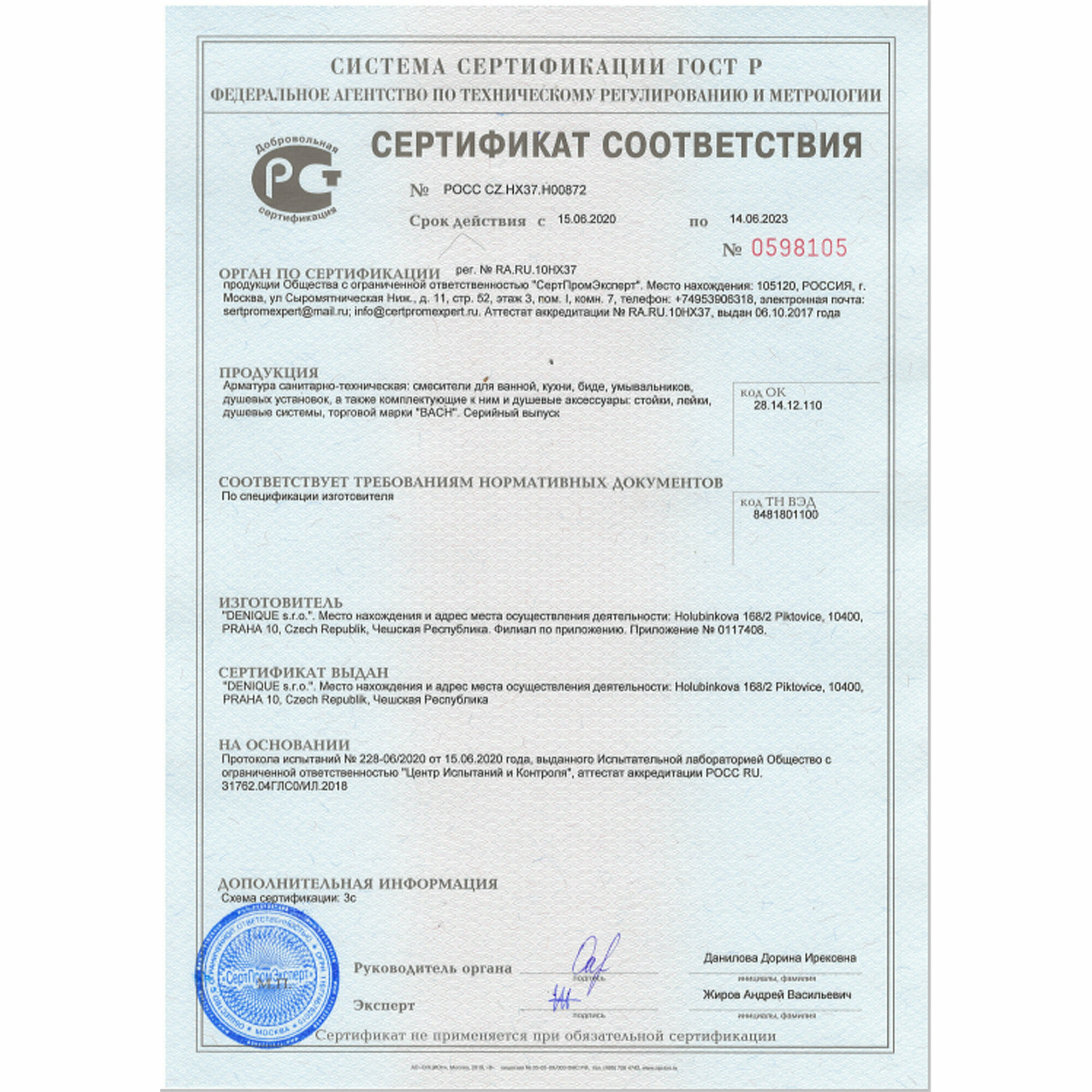 | Материал корпуса | латунь |