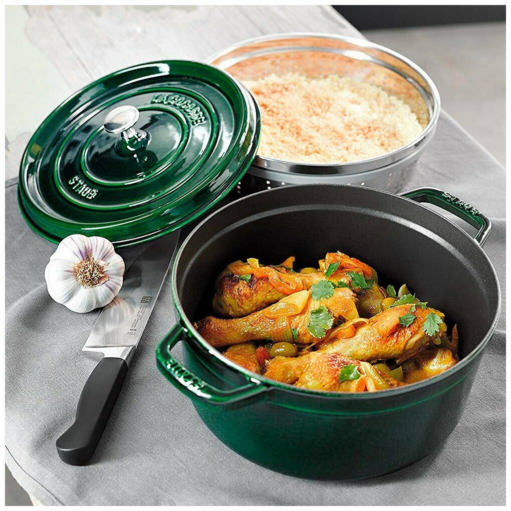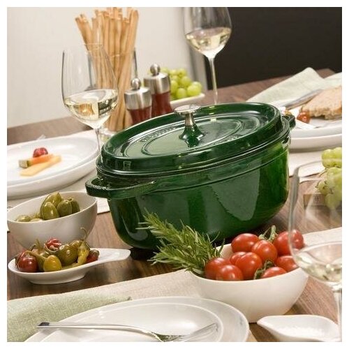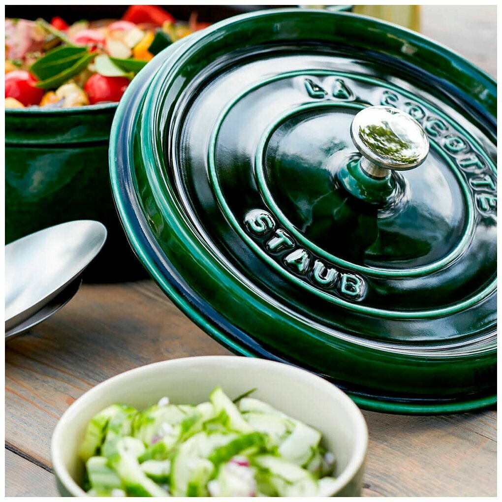 Кокот чугунный круглый, 28 см, 6,7 л, зеленый базилик, Staub, 1102885 интересное: