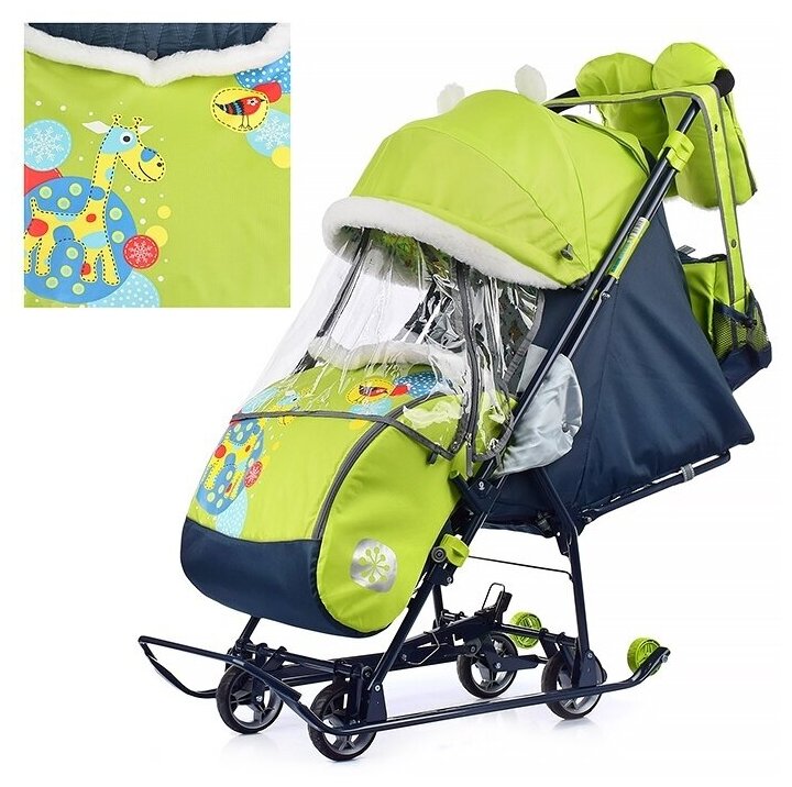 Санки-коляска комб. (НДТ5-1/7 с жирафом лимонный) НДТ5-1 интересное:
