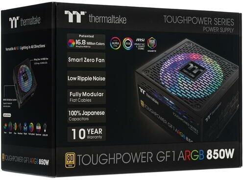 Блок питания Thermaltake Toughpower GF1 ARGB, 850Вт, 140мм, черный, retail [ps-tpd-0850f3fage-1] интересное: