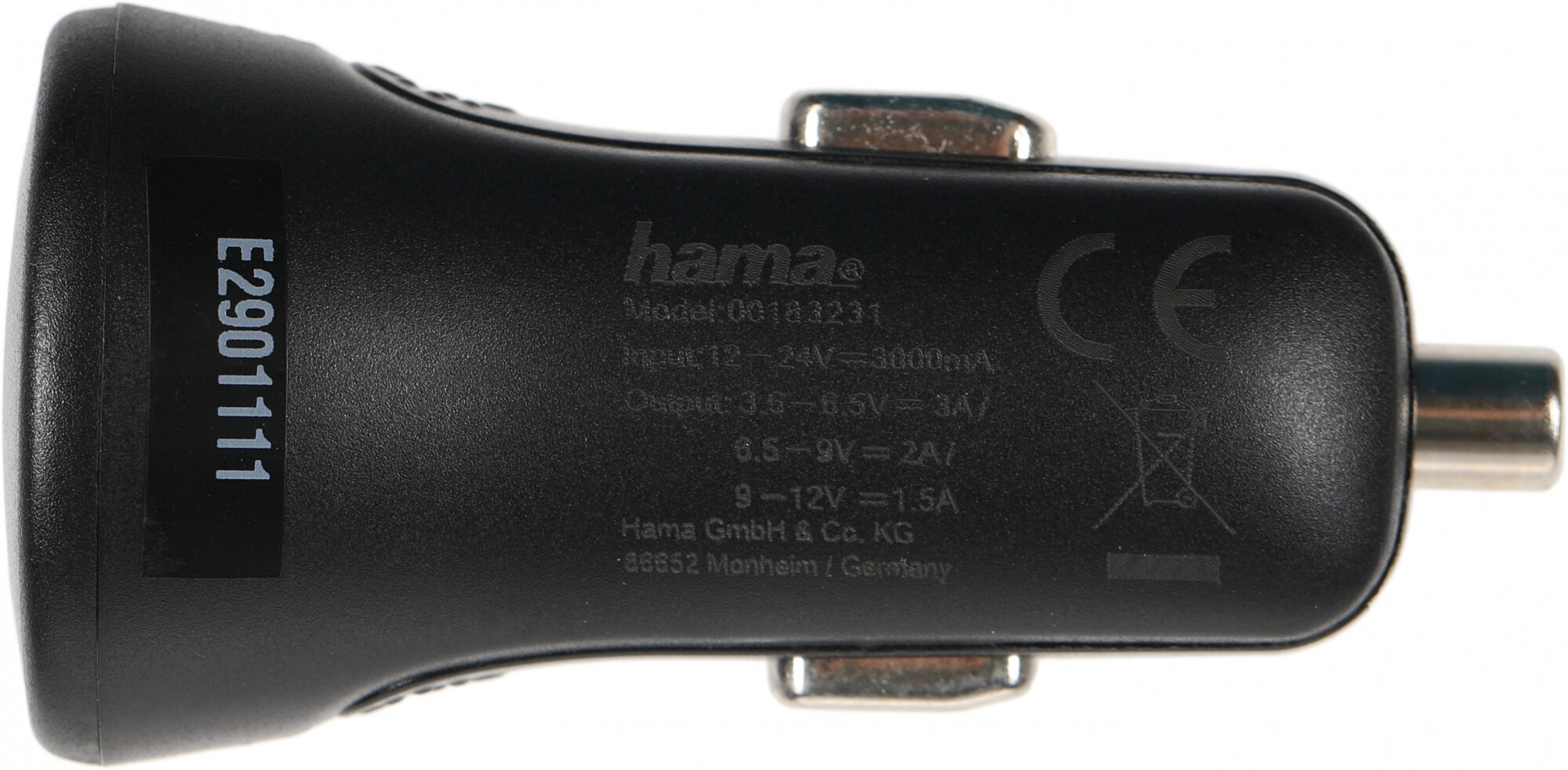 Автомобильное зарядное устройство HAMA H-183231, USB, USB type-C, 3A, черный [00183231]