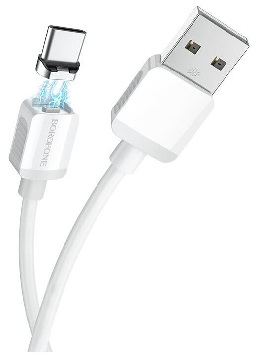 Кабель USB - Type-C Borofone BX57 Effective, 1.0м, круглый, 3,0А, пластик, магнитный, цвет: белый интересное: