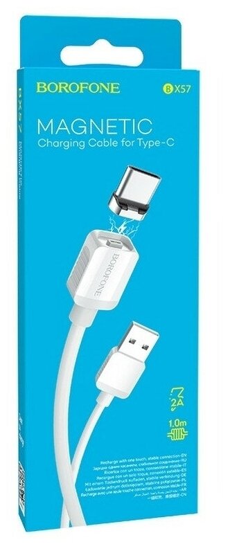 Купить Кабель USB - Type-C Borofone BX57 Effective, 1.0м, круглый, 3,0А, пластик, магнитный, цвет: белый