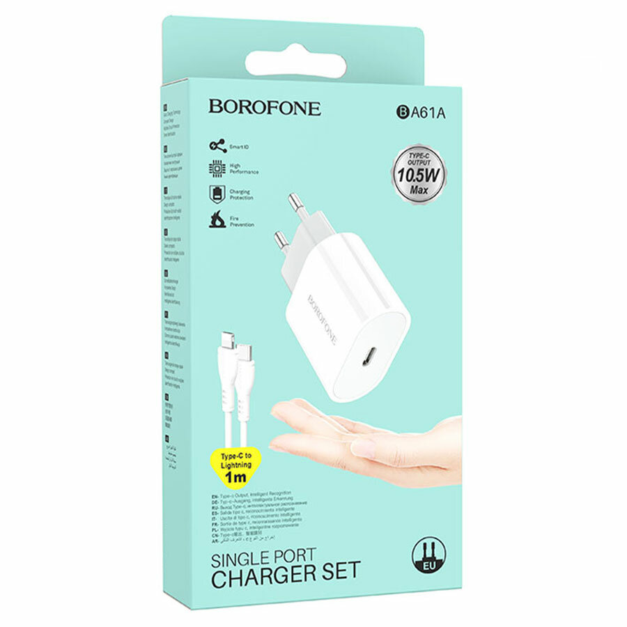 Сетевое зарядное устройство Borofone Ba61a, Type-C, 2.1 А, кабель Type-C - Lightning, белый Borofone