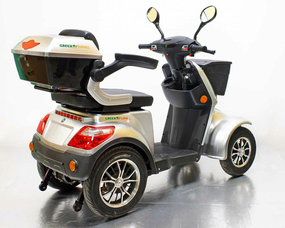 Электромобиль/скутер/мобилити GreenCamel Пони 4K (48V 500W 36 км/ч) четырехколесный с креслом для пенсионеров, пожилых и маломобильных Серебристый
