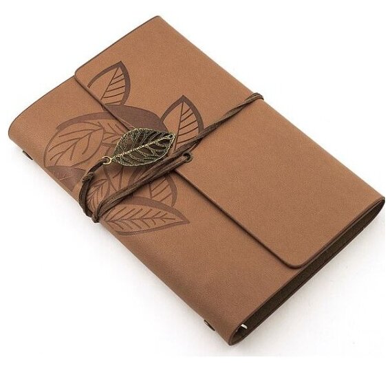 Блокнот, записная книжка, ежедневник, тетрадь на кольцах, со сменным блоком, крафт страницы, экокожа Эврика (Листья 12х18 см, светло-коричневый) подарок мужчине на 23 февраля, коллеге, мальчику, парню, женщине на 8 марта, девушке, девочке 14 февраля интересное: