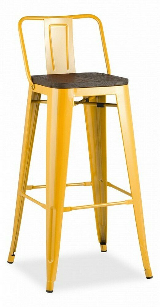Барный стул Stool Group Tolix Wood со спинкой желтый глянцевый, темное дерево