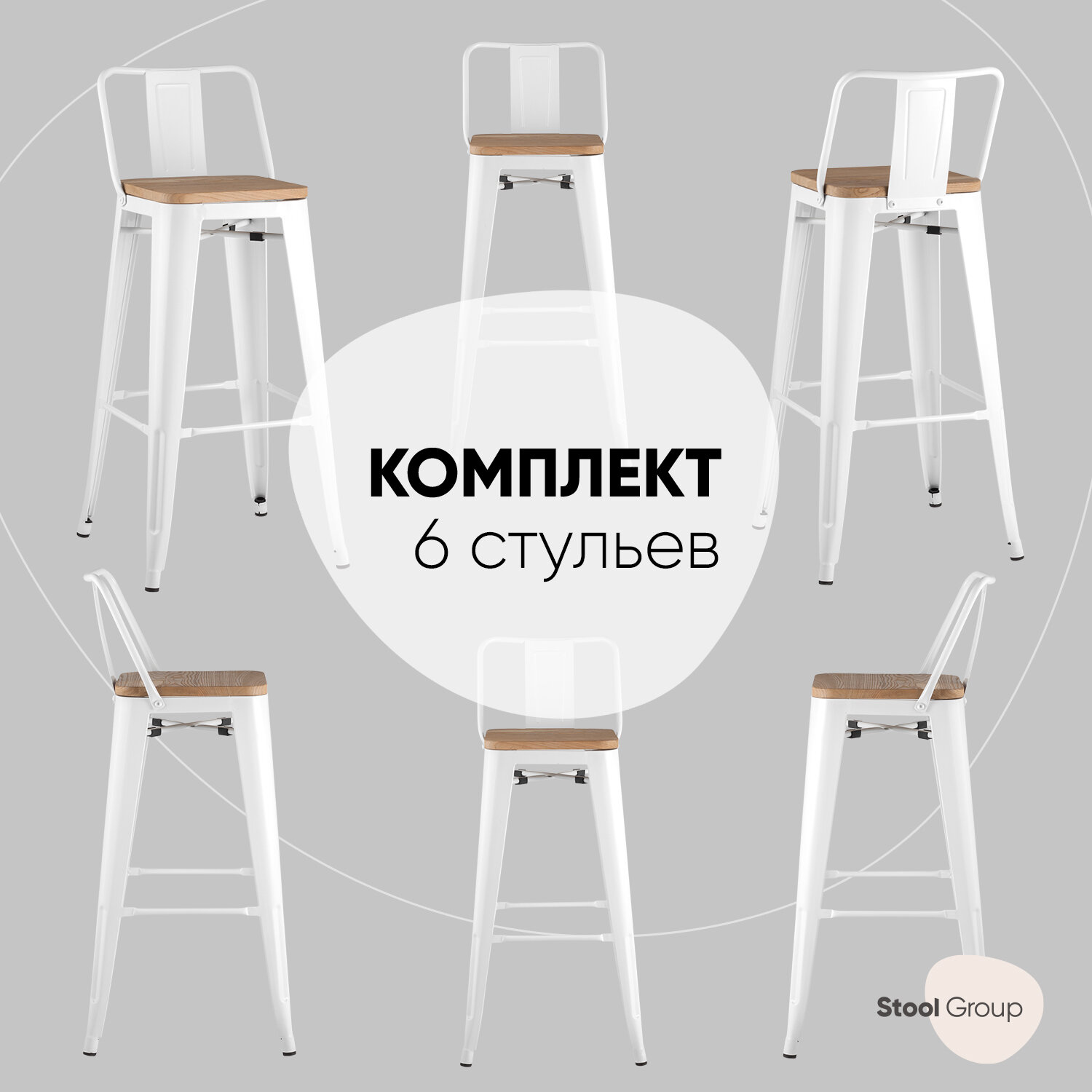 Купить Стул барный TOLIX со спинкой белый глянцевый + светлое дерево (комплект 6 шт)